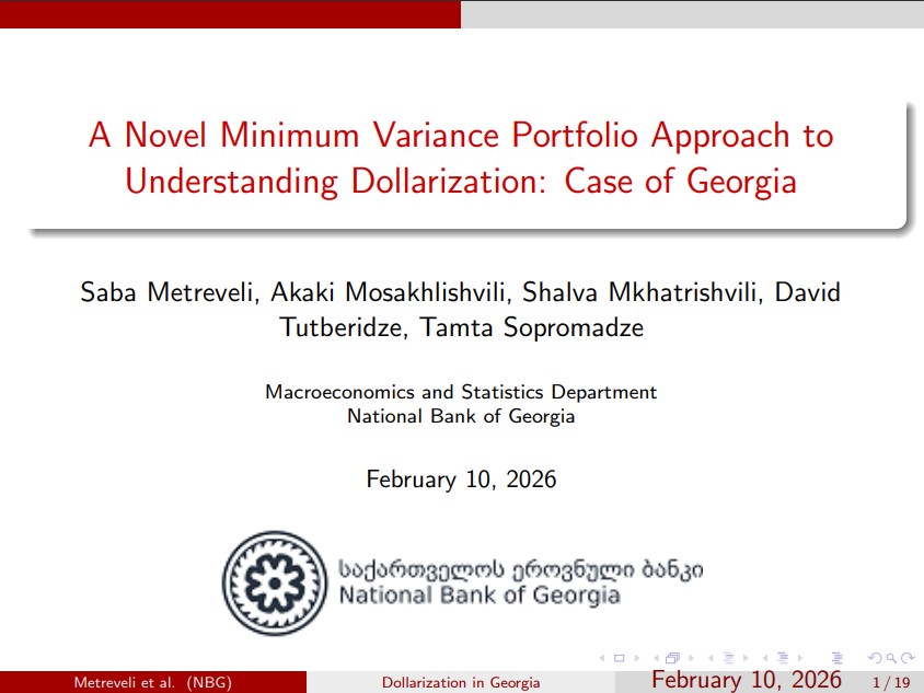 В недавнем исследовательском семинаре ЦТП-КЦАМ экономисты Национального банка Грузии представили подход минимальной дисперсии для понимания долларизации в Грузии. Презентация, представленная Сабой Метревели от имени авторской команды, рассмотрела новое расширение модели портфеля минимальной дисперсии для анализа долларизации депозитов. Read more